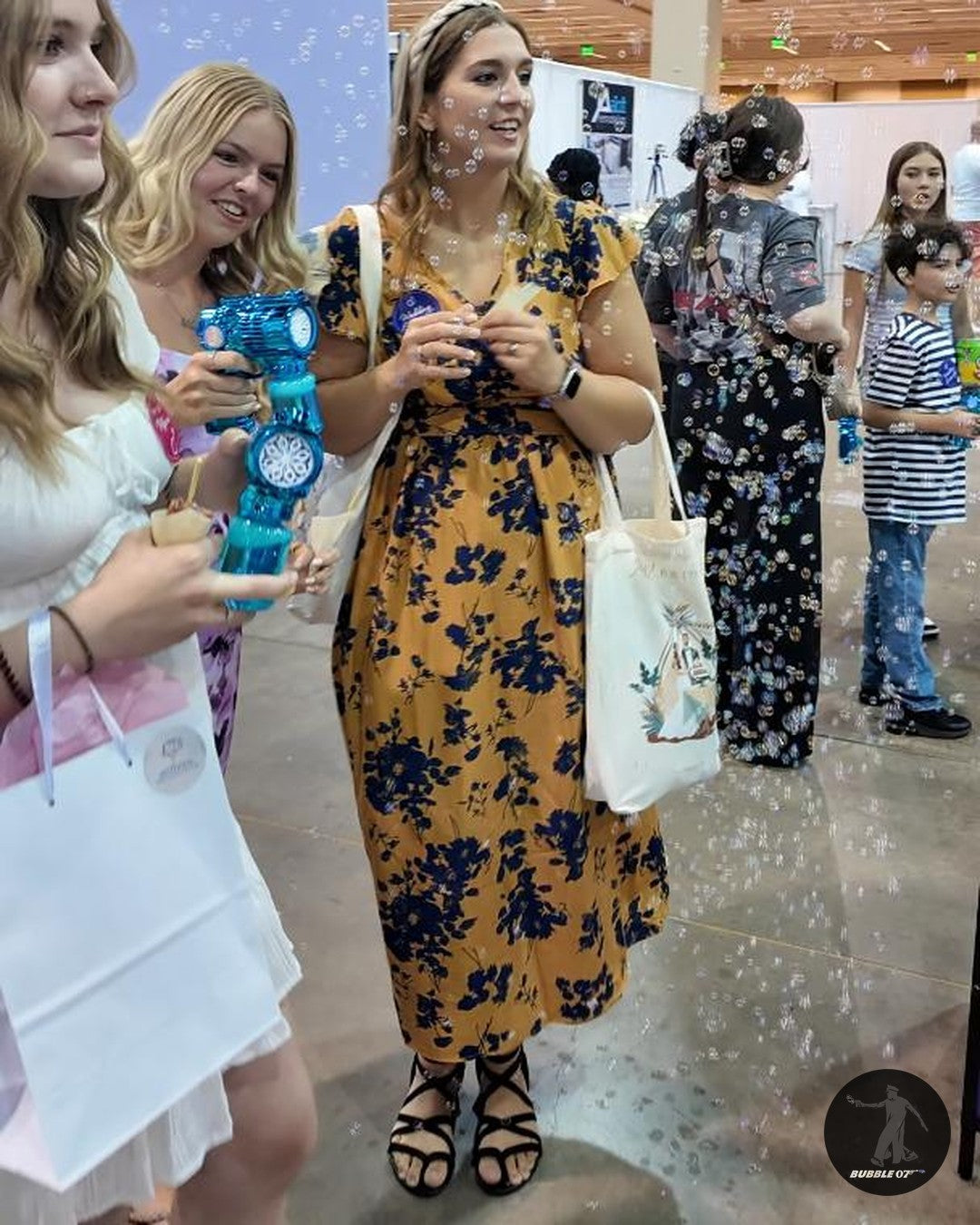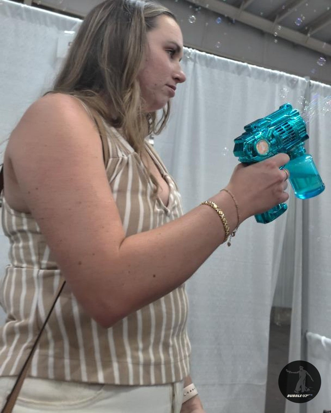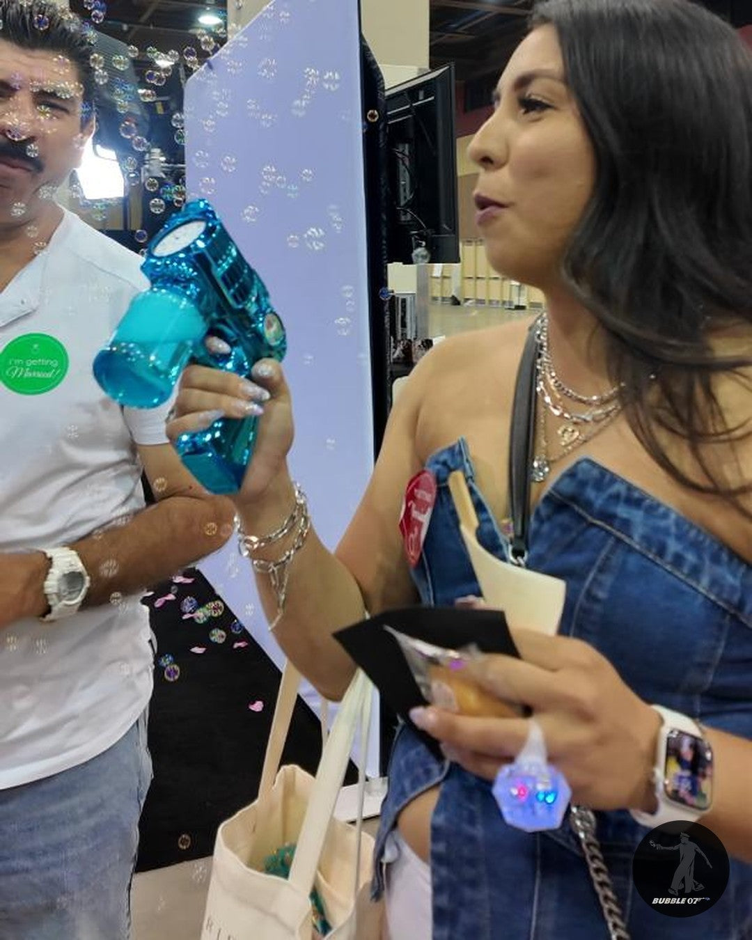 Powerful Performance: Shoots hundreds of bubbles a second! Equipped with robust motors, the Bubble 07 Gun produces a mesmerizing stream of bubbles that captivate and enchant, setting the mood wherever you go.